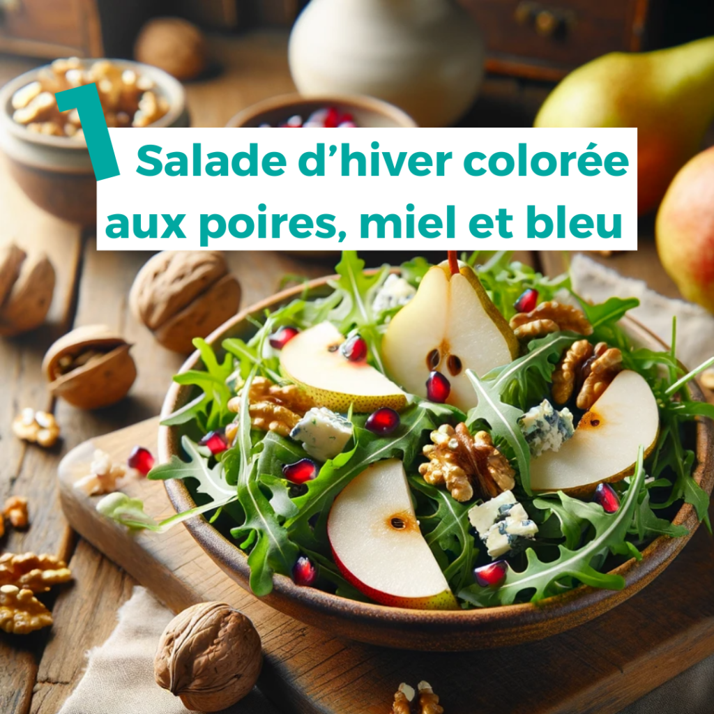 Cette salade combine des ingrédients riches en antioxydants et en fibres. La grenade est connue pour ses propriétés anti-inflammatoires, tandis que les noix apportent des acides gras essentiels bénéfiques pour le cœur. La roquette, riche en vitamines, et le fromage bleu, source de calcium, complètent parfaitement cette salade saine et savoureuse.
