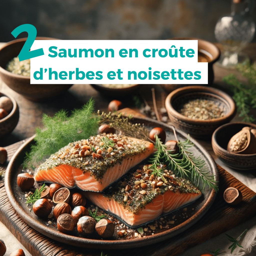 Le saumon est une excellente source d’oméga-3, essentiels pour la santé du cœur et du cerveau. Les herbes apportent des antioxydants et des vitamines, tandis que les noisettes ajoutent des protéines et des bons gras. Cette recette est parfaite pour un repas équilibré et riche en nutriments.